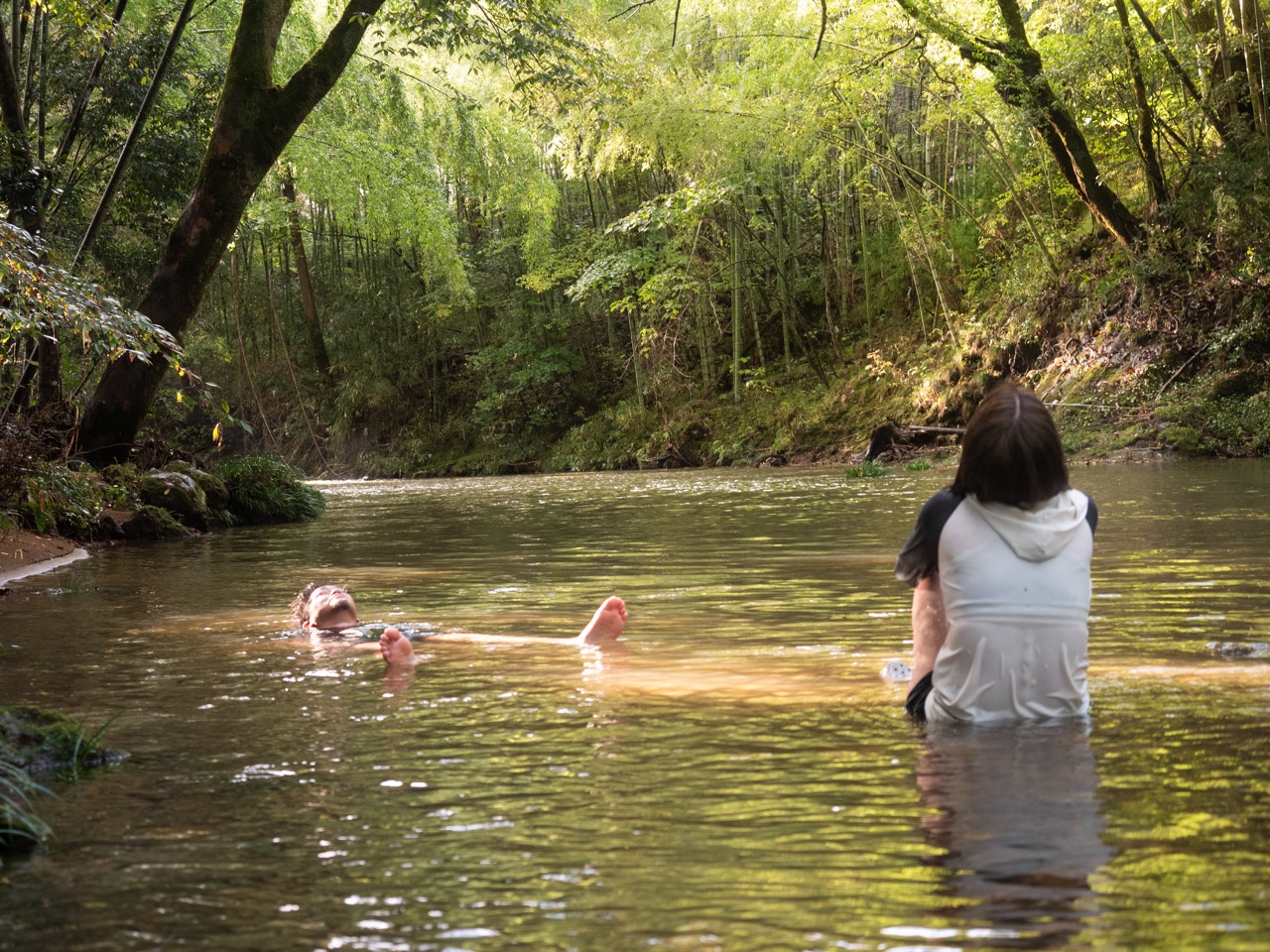 まるで秘境のような天王川の清流と風で揺れる竹林を望みながら入るサウナ